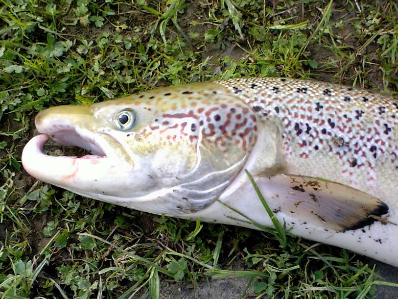Weer een aflevering in de serie "Zeeforel of zalm?". Jorik van der Hoeven stuurde twee foto's in van een salmonide van meer dan 90 centimeter lang, gevangen door een visvriend in een grote rivier in Nederland. Het aas was een ratelplugje.