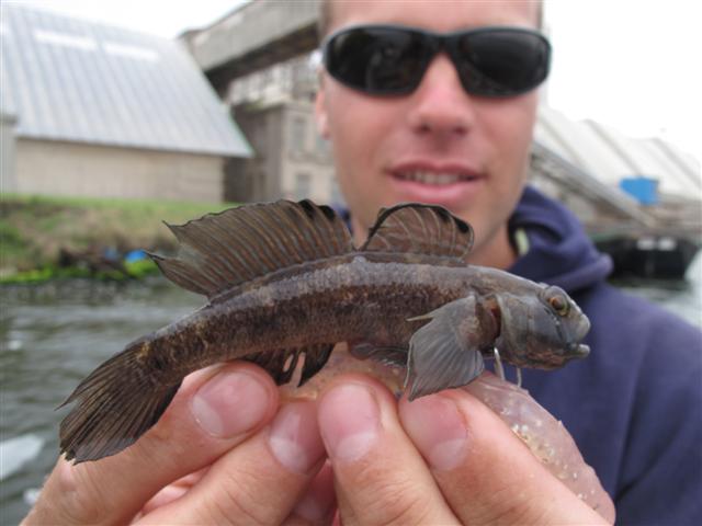 Bas Schreuder ving een aantal van deze vissen in het Noordzeekanaal en was benieuwd wat het voor soort vissen het waren. Zelf dacht hij aan de zwartbekgrondel, die steeds vaker in Nederland wordt gevangen. Helaas kunnen we op basis van deze foto's (1, 2) niet met zekerheid zeggen wat het is. Waarschijnlijk is het een zwartbekgrondel of een rivierdonderpad.
