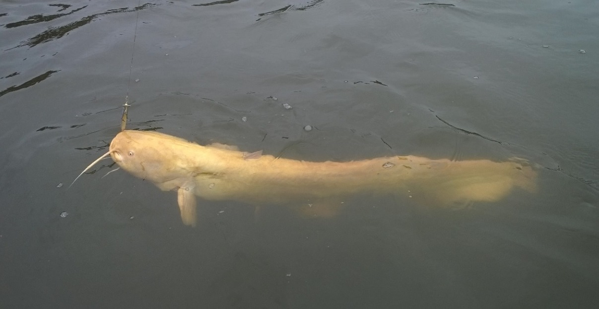 Op www.mijnvismaat.nl zagen we Ferron de Jager met deze albino kanaalmeerval. In Amerika komt de soort veel voor. We vermoeden dat deze vis is uitgezet door een aquarium houder.