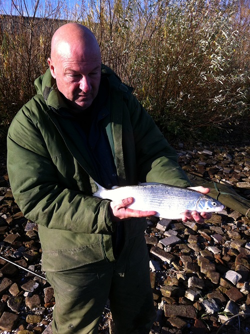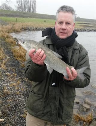 Adrie Schuurmans ving deze mooie houting op de Waal. De vis woog 1,3 kilo en was 48 cm lang.