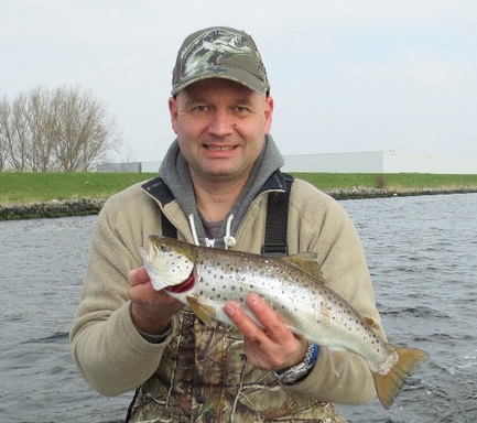 VISmaat Robby Bijlsma ving deze prachtige zeeforel in het Noordzeekanaal. De vis is mooi dik en verkeerd in goede conditie. Robby zette deze beschermde vis na de foto direct terug. 5 januari 2015