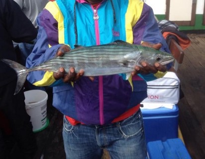 Aan boord van het schip de Andromeda van sportvisserij Hoogerwerf werd deze schitterende Atlantische Bonito gevangen. De eerste vangst in Nederland van deze soort!