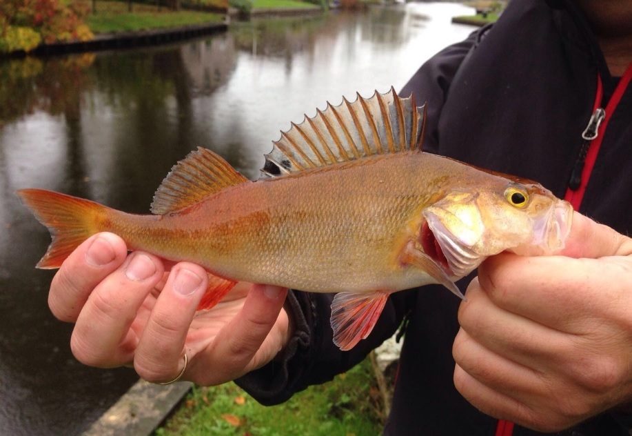 Kees Jan ving deze hele bijzondere goudbaars tijdens het vissen op snoekbaars. We hebben van veel vissoorten al gouden varianten lang zien komen zoals de goudaal, goudsnoek, goudzeelt, goudwinde, goud voorn enz. Nooit eerder zagen we een goudbaars.