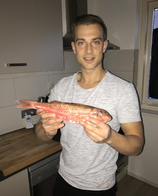 mul. Mullen worden in de zomer of in het begin van de herfst sporadisch gevangen op wrakken in de Noordzee. Deze vis werd echter vanaf de kant gevangen en alsof dat niet bijzonder genoeg was ving Robin hem in december! Het zijn heerlijke vissen en staan vaak bij restaurants op de kaart. Mogelijk gaan we meer mullen zien in de toekomst door opwarming van het zeewater.