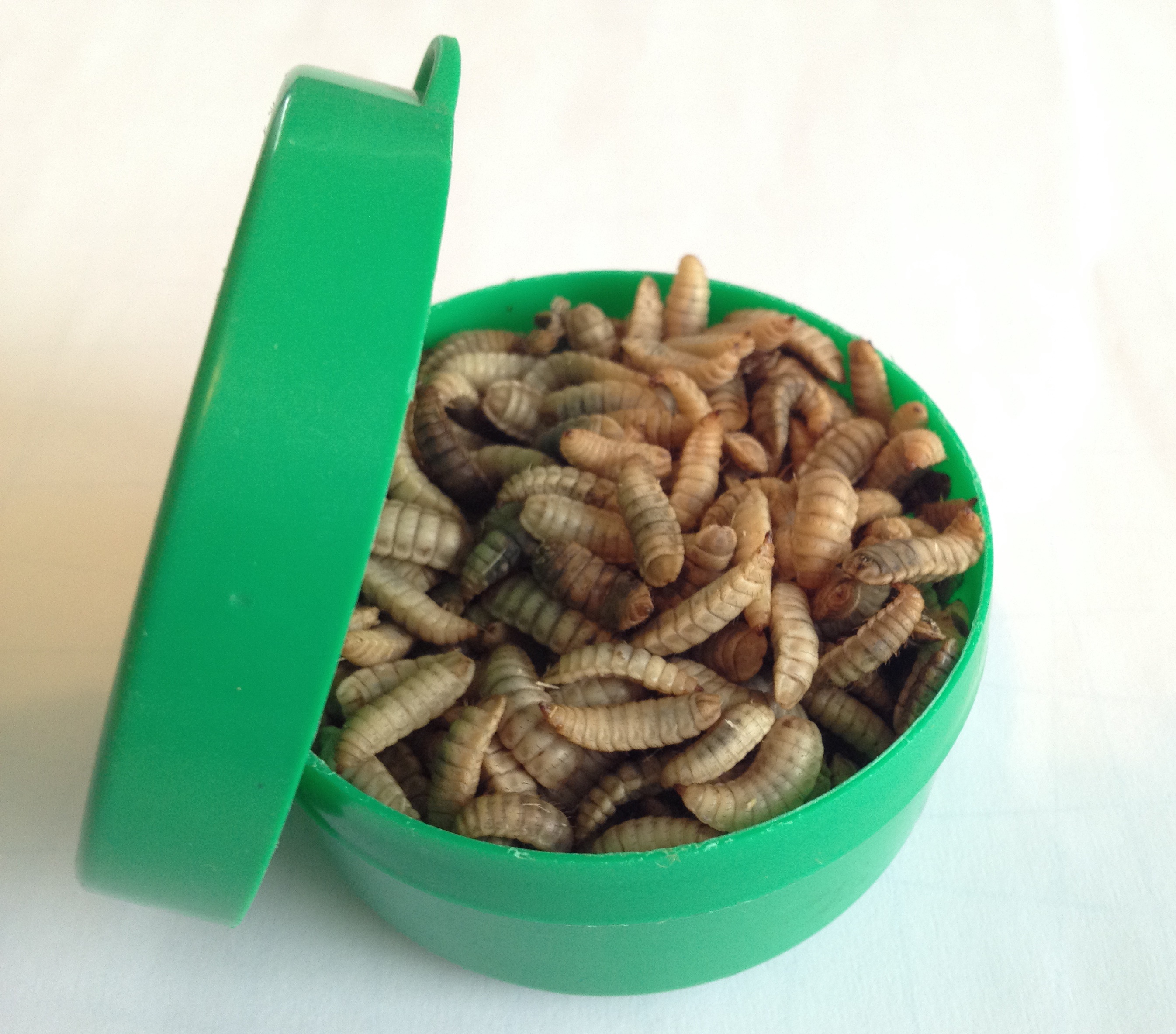 In het project Achteroever Wieringermeer onderzoekt Sportvisserij Nederland de bruikbaarheid van eiwitten uit insectenlarven. Jaap Quak, projectleider van Sportvisserij Nederland: “We doen proeven met de larven van de zwarte soldatenvlieg. Deze larven worden gevoed met plantaardig restafval, zoals koffieprut, waterplanten, kroos, bierbostel, GFT, mest en fruit.” Op hun beurt dienen de larven weer als voedsel voor karpers. En op de vijvers drijven bakken waarin groente wordt geteeld dankzij de uitwerpselen van de karpers. “Daarmee creëren we een gesloten keten op basis van afvalstoffen. Er is dus geen vismeel meer nodig en we kweken ook nog karpers”, zegt Quak enthousiast.