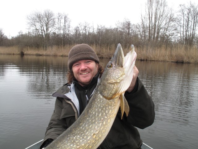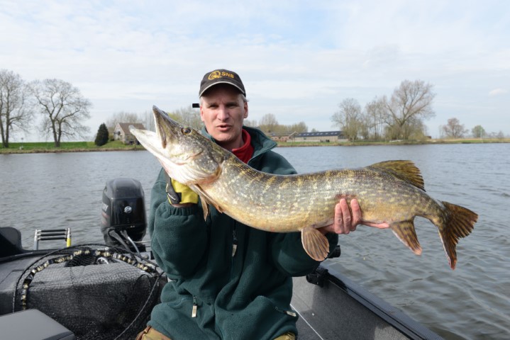 Een van de initiatiefnemers en visgids Ingmar Boersma met een snoek.
