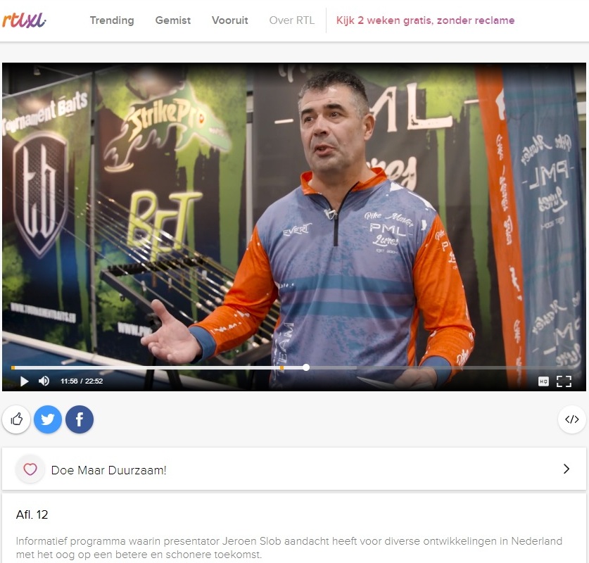 In aflevering 12 van het RTL Z-programma 'Doe Maar Duurzaam' werd volop aandacht besteed aan de verduurzaming van de hengelsport. Zo vertelde hengelsportondernemer Evert Oostdam over de inzet om loodgebruik in de hengelsport sterk te reduceren en uiteindelijk uit te bannen.