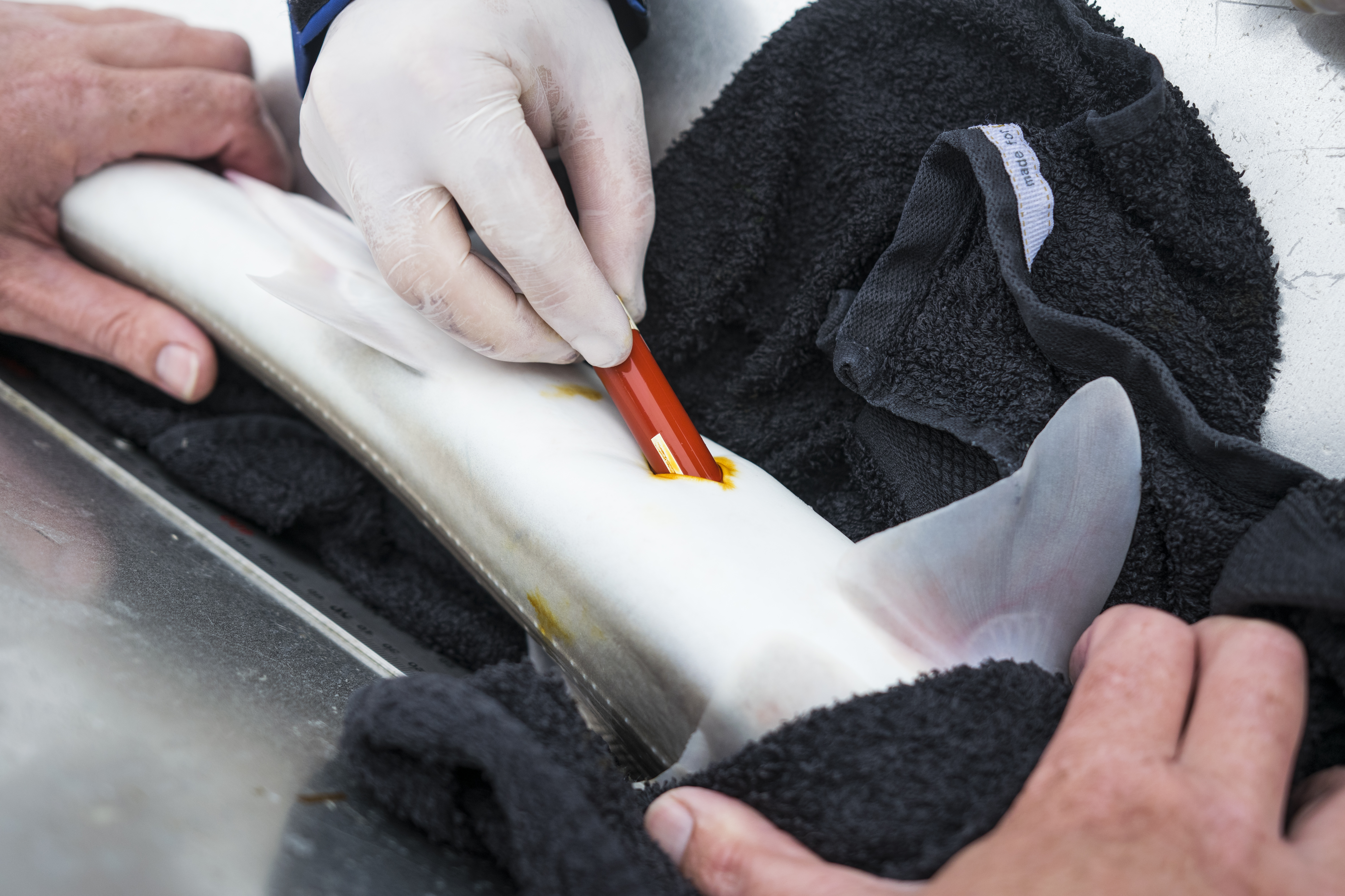 Op donderdag en vrijdag zijn er voor het achterliggende haaienonderzoek acht vissen voorzien van een zogeheten Vemco-zender. Deze zenden een geluidssignaal uit, dat kan worden opgevangen met een ontvanger. Eén van de gevlekte gladde haaien die vrijdag werd gevangen, was groot genoeg voor een speciale 'satellite zender'. Deze draagt de haai voor 380 dagen met zich mee en laat daarna los zodat hij naar het oppervlakte kan drijven en ons de verzamelde data via de ARGOS satelliet doorgeeft.