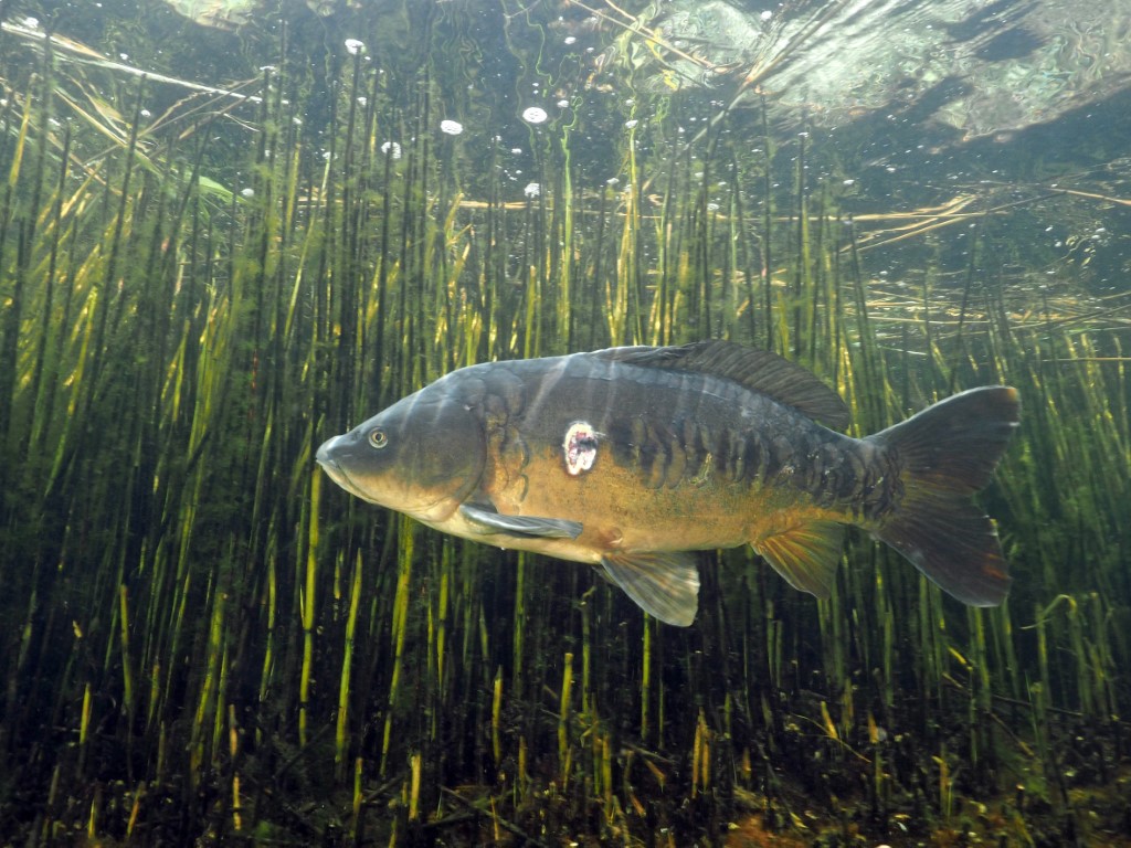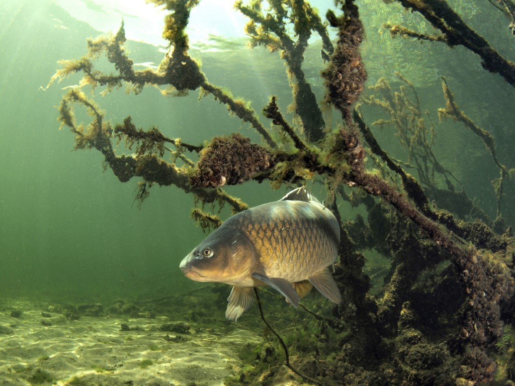 Boven water is het gespetter ook goed te volgen. Karper paait in