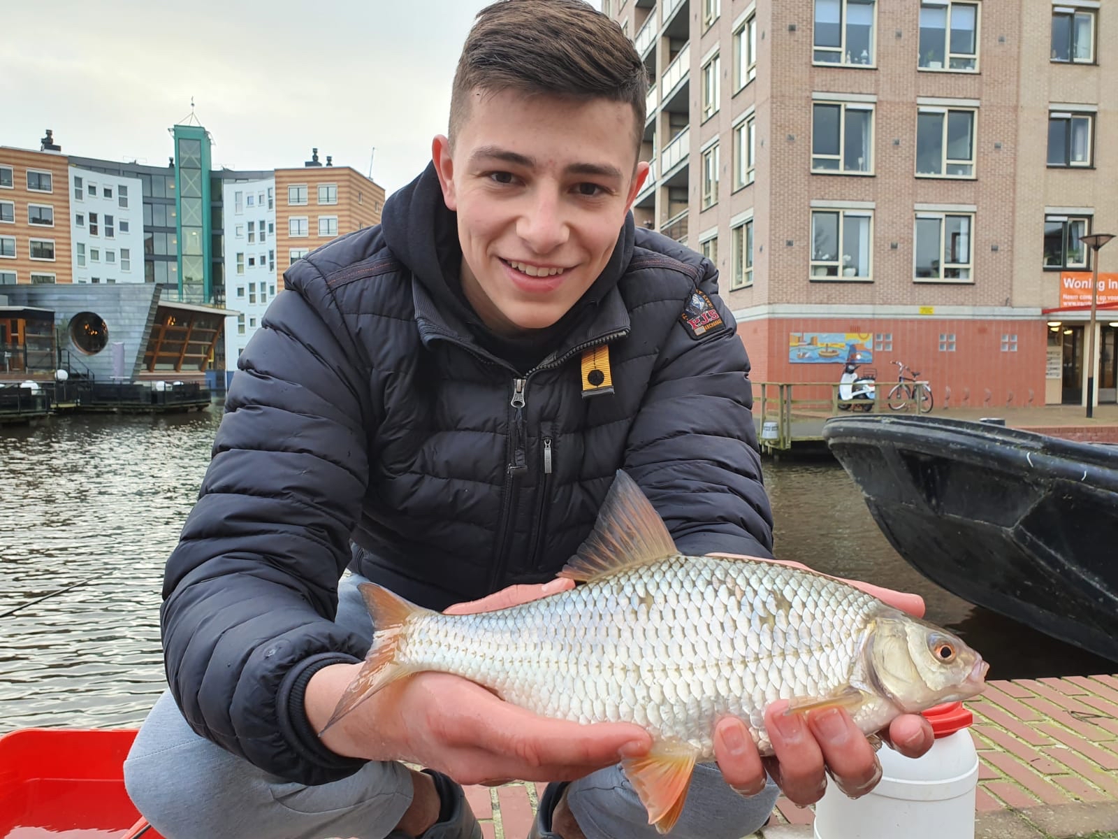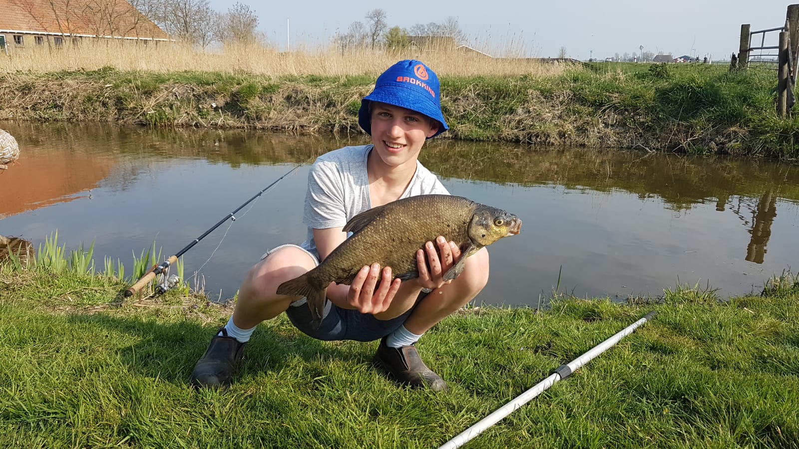 Deze Friese brasem mocht Jan Evert Tolsma even vasthouden na de vangst om daarna weer te laten zwemmen.