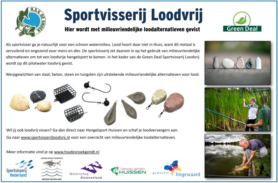 Met deze campagne draagt de vereniging bij aan de Green Deal Sportvisserij Loodvrij, waarin Sportvisserij Nederland samen met de Rijksoverheid, Unie van Waterschappen, Dibevo en Natuurmonumenten werkt aan het stoppen van het loodgebruik in de sportvisserij. In samenwerking met Sportvisserij Nederland en Hengelsport Federatie Midden Nederland zijn borden over loodvrij vissen geplaatst bij twee van de belangrijkste verenigingswateren (de Kanovijver en het Zwembad), waar onder meer gevist wordt op karper en met voerkorfjes op witvis – disciplines waarvoor prima loodvervangers verkrijgbaar zijn.