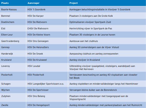 Toegezegde subsidies 2019 Fonds Verbetering Sportvisserijmogelijkheden: