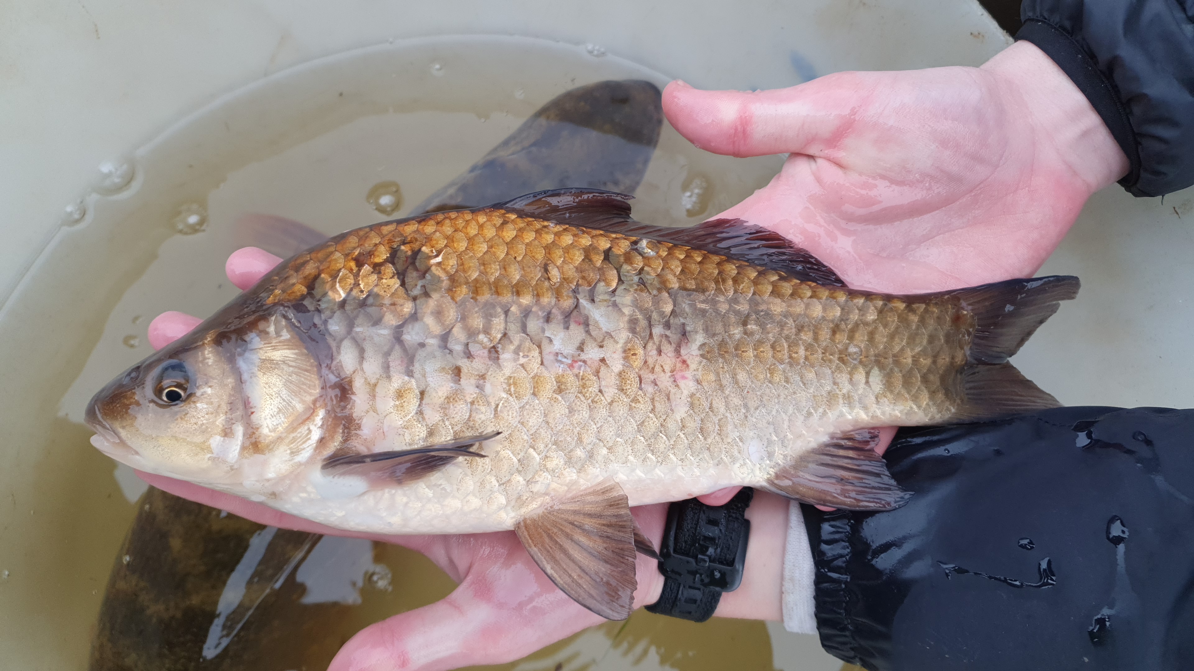 Kruiskarper met aalscholverschade water De Drie Meren