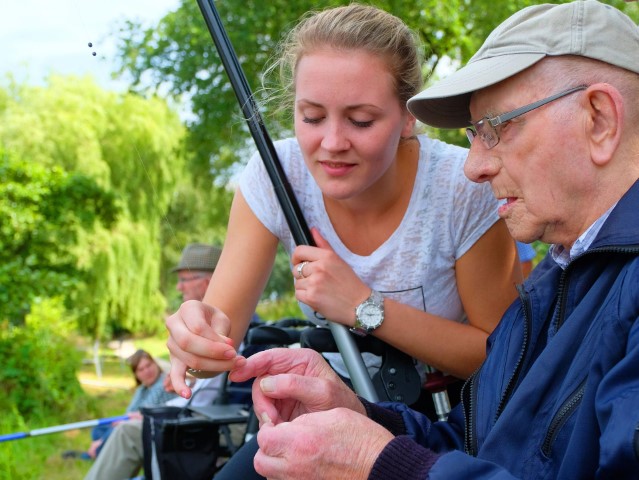 Samen vissen met bewoners van zorgcentra.