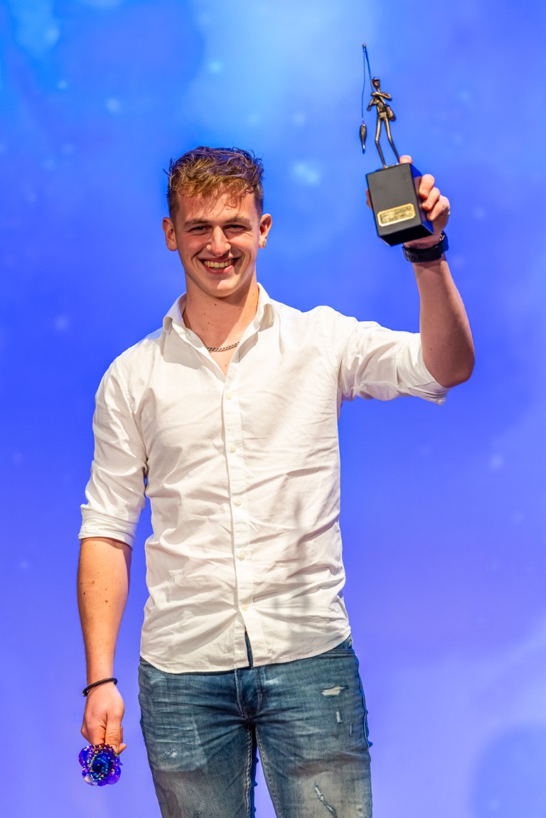 Het overwegend ‘zoete’ publiek keek bij de verkiezingen verder dan de eigen discipline en verkoos – samen met de vakjury – kustvisser Maarten van Beek tot sporttalent van het jaar. “Dit had ik echt niet verwacht. Wat super vet, ik ben bijna sprakeloos. Bedankt voor al jullie stemmen”, zegt de Zeeuw verrast als hij op het podium staat.