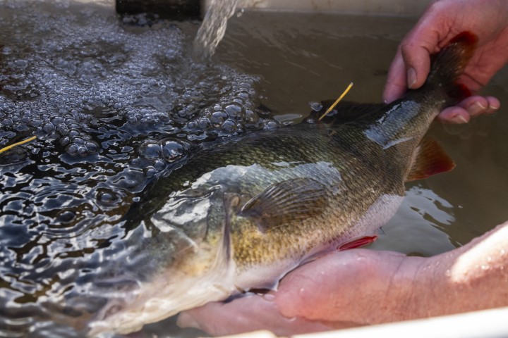 Sportvissers die een gemerkte baars vangen, worden opgeroepen hun vangst te melden op