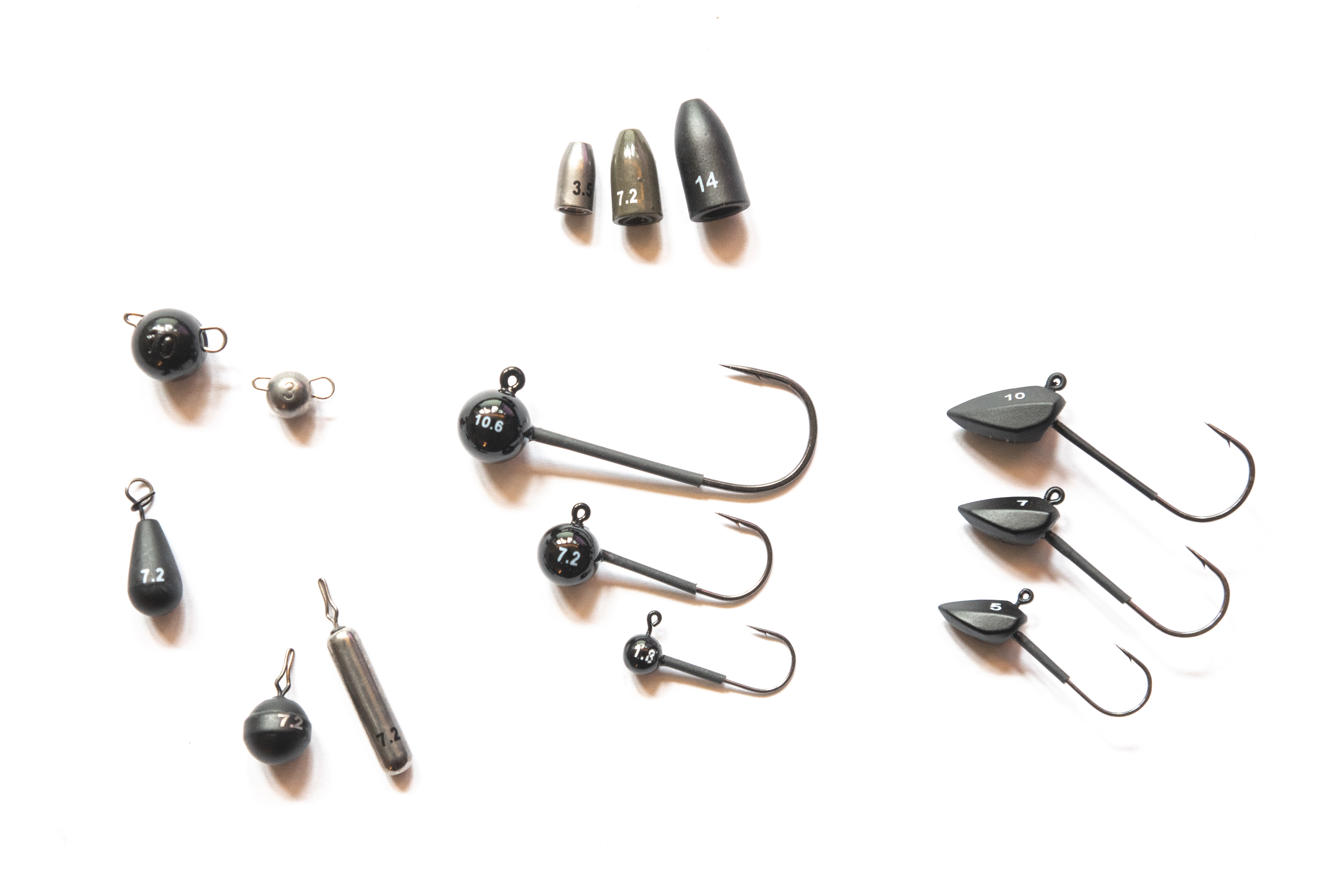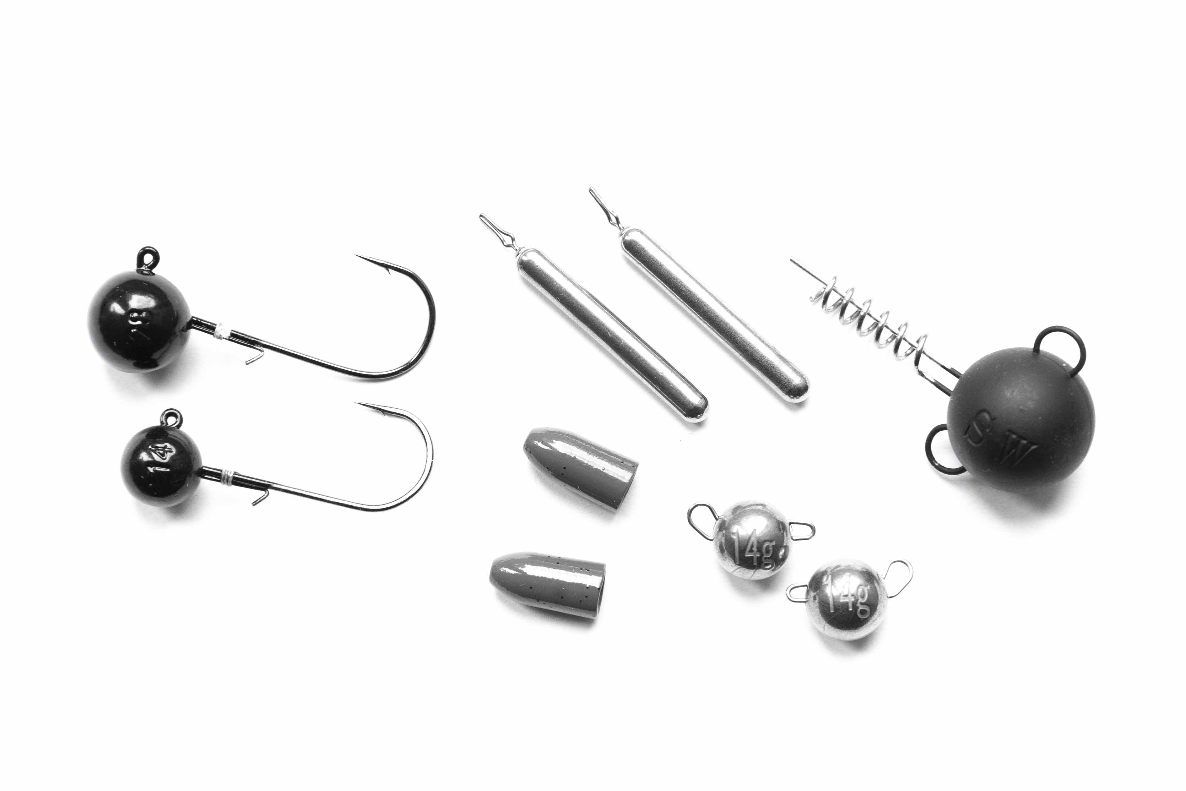 en bullet weights tot aan verzwaarde offsethaken en jigheads aan toe.