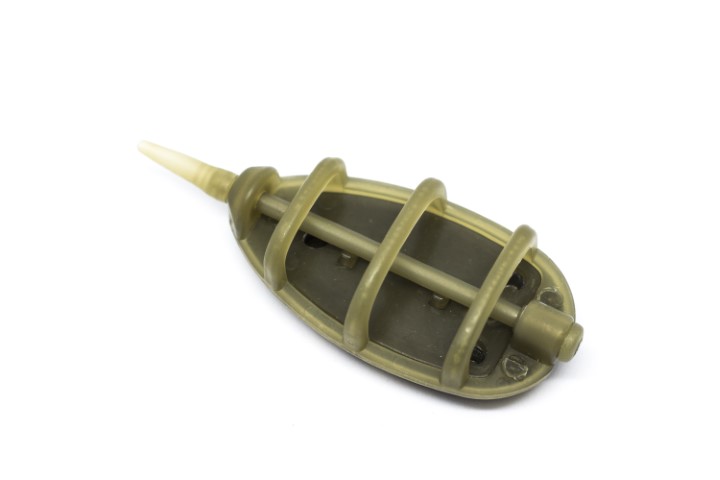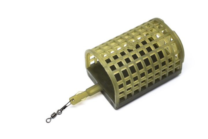 Top Feeder 3 in 1 van eXtra Carp. Halfronde plastic voerkorven, verzwaard met ijzer in plaats van lood. Zowel open als gesloten te gebruiken. Verkrijgbaar in gewichten van 20 t/m 40 gram.