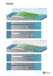 Visfilet, vislift. Het scheelt maar één letter. Om te voorkomen dat de vis in mootjes of ontschubd het gemaal uitkomt zijn er bijvoorbeeld vistrappen. Het Hoogheemraadschap van Delfland koos echter voor visliften. En zoals dat hoort, gaan die omhoog én omlaag.