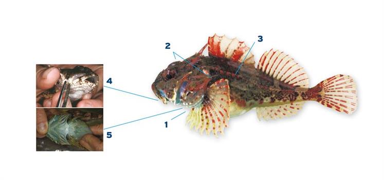 Herkenning: 1. Buikvinnen ieder met maximaal drie vinstralen. 2. Grote kop met stekels. Stekel op voorkieuwdeksel langer dan de oogdiameter. 3. Met stekeltjes op de zijlijn; lichaam aan weerszijden van de zijlijn glad. 4. Met een huidflapje aan de bovenkaak in de hoek van de bek. 5. Membraan onder de kieuwen glad verbonden met de buikhuid.