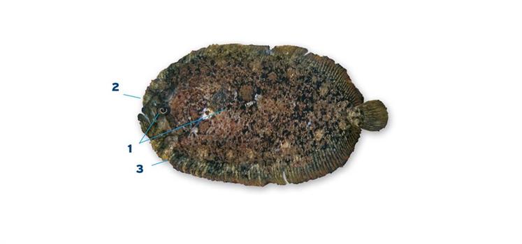 Herkenning: 1. Platvis met de ogen op de linkerzijde, met ook een zijlijn op de ‘blinde’ zijde. Lichaam ovaal en bruin gekleurd met onregelmatig gevormde, grote vlekken. De schubben aan de oogzijde hebben kleine uitsteeksels, waardoor de vis aanvoelt alsof deze een vacht heeft. 2. De rugvin begint direct achter de bovenlip. 3. Buik- en anaalvin vergroeid.