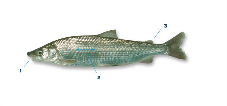 Herkenning: 1. De van en naar zee trekkende houtingen bezitten een lange vlezige ‘neus’ boven een kleine, onderstandige bek. De bovenkaak reikt tot voor het oog. 2. 80-90 schubben op de zijlijn. 3. Er is een vetvin aanwezig.