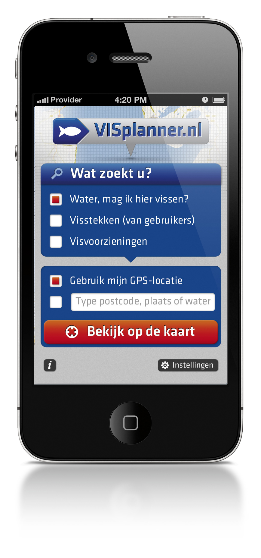 Aan de hand van de plek waar je je bevindt is het ook mogelijk om via GPS (of door het invoeren van postcode of plaats) te zoeken naar zogenaamde Points of Interest (POI). Je kunt daarbij selecteren op trailerhellingen, vissteigers, mindervalidensteigers, hengelsportzaken, bootverhuur en forelvisvijvers. Ook deze zie je vervolgens netjes op de Google Maps kaart. Tenslotte kun je ook zoeken naar visstekken op basis van een vissoort. Zo kun je achterhalen op welke stekken je bepaalde soorten kunt vangen.