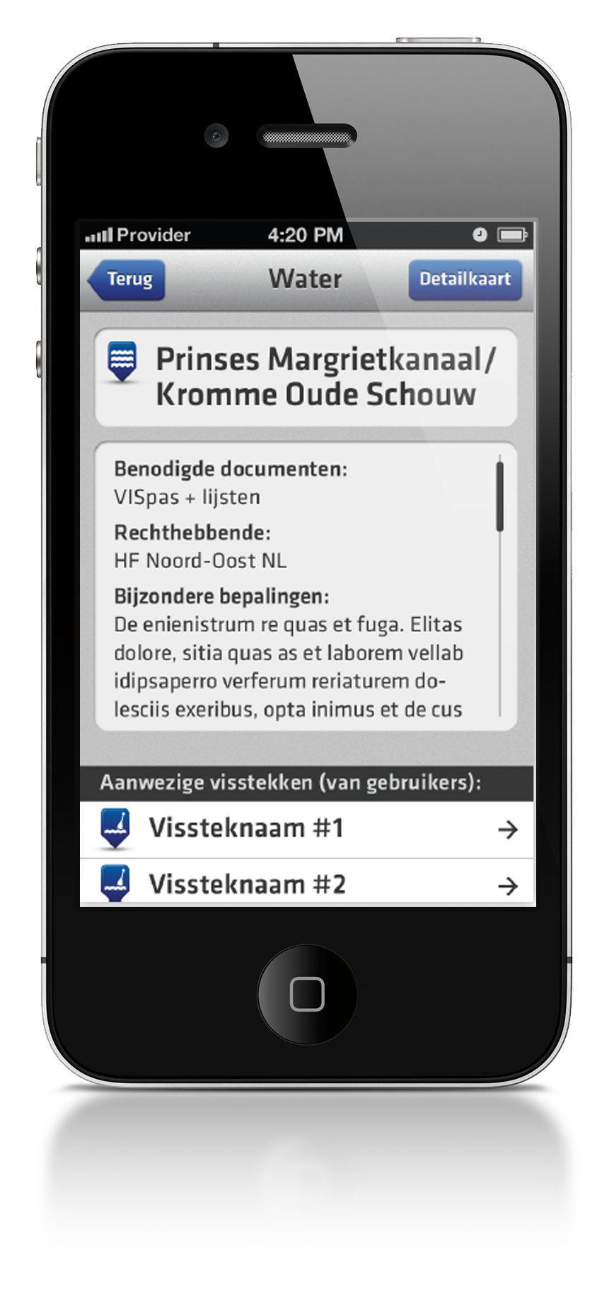 vissen, maar ook interessante visvoorzieningen zoals trailerhellingen, vissteigers en hengelsportzaken.