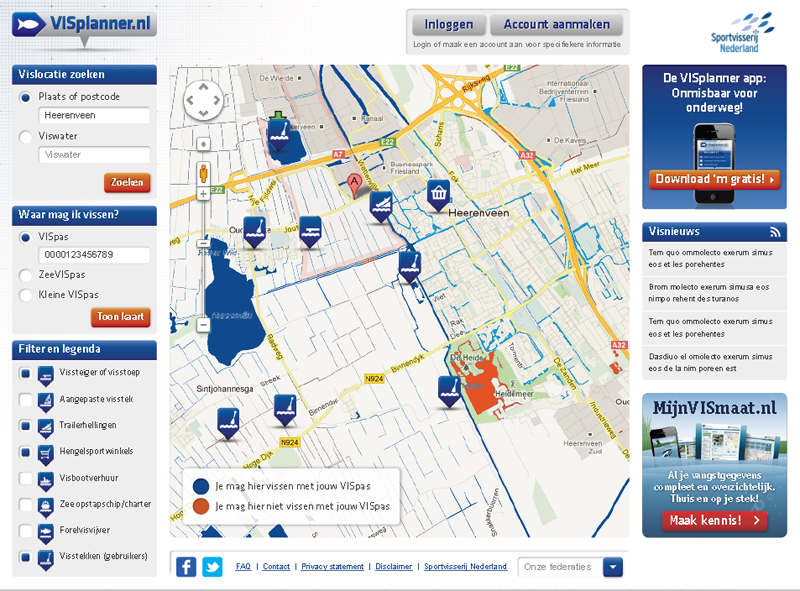 Eenvoudig via de website op kaart zien waar je wel en niet mag vissen met jouw VISpas.