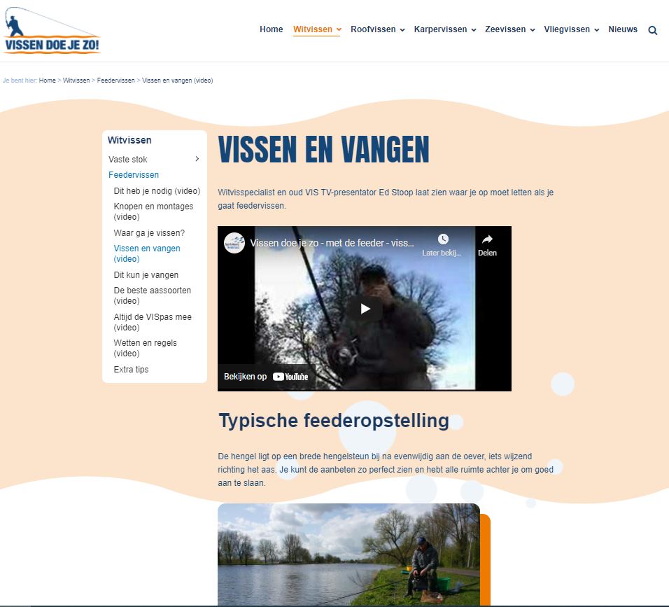 Vissen Doe Je Zo is een spoedcursus sportvissen met handige uitleg, tips & trics, video's, instructies, montages en meer. Netjes gesorteerd in diverse vistechnieken zoals witvissen, roofvissen, karpervissen, zeevissen en vliegvissen.